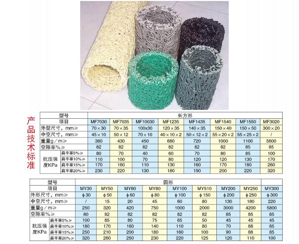 2、由于是立體結(jié)構(gòu),其空隙率為80-95%,構(gòu)成空間與管理同且輕便,抗壓性能比管結(jié)構(gòu)的樹脂強(qiáng)10倍以上,因此,即使因超負(fù)荷被壓,但由于是立體結(jié)構(gòu),故殘余空隙也達(dá)50%以上,不存在不通水的問題,無需考慮會(huì)被土壓力壓壞。